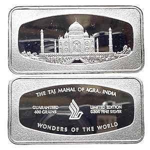 The Taj Mahal of Agra India SIA Wonders of the World Limited Edition Silver Ingot
