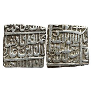 Mughal Akbar Urdu Zafar Qarin Mint Silver Square Rupee