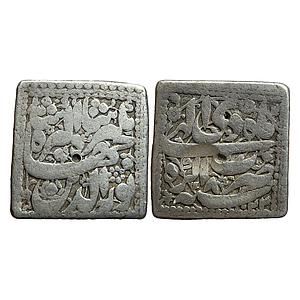 Mughal Jahangir Agra Mint ilahi type Month Di Capricon Silver Square Rupee